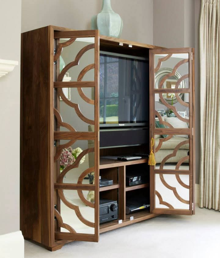 Walnut ornate mirrored cabinet